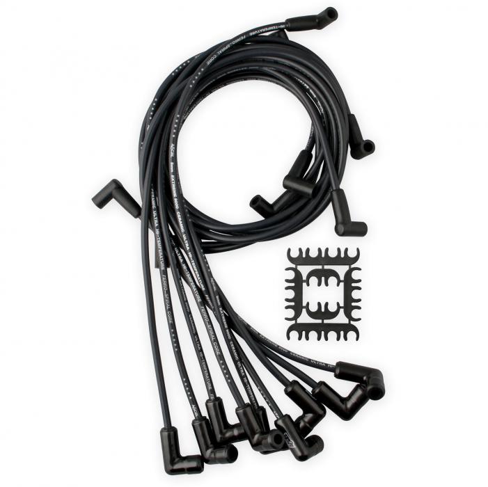 Do you want to put headers on your vehicle, but are afraid you may cook the spark plug wires? Just looking for a nice upgrade for your stock spark plug wires? If you answered yes to any of these questions, ACCEL has the wire set for you. ACCEL Extreme 9000 Ceramic Boot Wires feature ultra high-temperature, double silicone, 8mm, 500 ohms/ft Ferro-Spiral core wire developed for performance use. The wire is rated at 600 degrees Fahrenheit peak and the black Ceramic boots withstand up to 2,000 degrees. Great for running headers with close tolerances, an engine bay with little room or an application with high under-hood temps. ACCEL Extreme 9000 wires offer excellent energy delivery to the spark plugs through stainless steel spark plug terminals, while providing the highest level of RFI/EMI suppression.