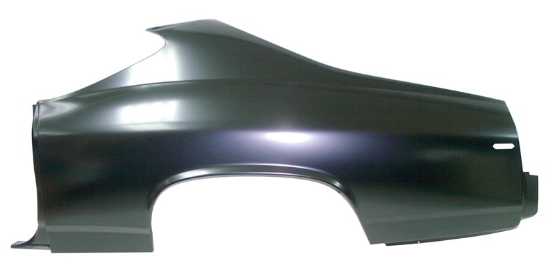 New reproduction quarter panel for the 1969 Chevrolet Chevelle Coupe. Each quarter panel is manufactured from high quality, heavy gauge steel on our exclusive new tooling and feature, depending on application, correct as original body lines, braces, marker light holes, and antenna cut-out. Unlike lesser quality competitors parts, AMD quarter panels look great and fit even better! Like all AMD parts, this quarter panel will arrive in a black EDT Coat finish and will require standard prep work prior to paint.