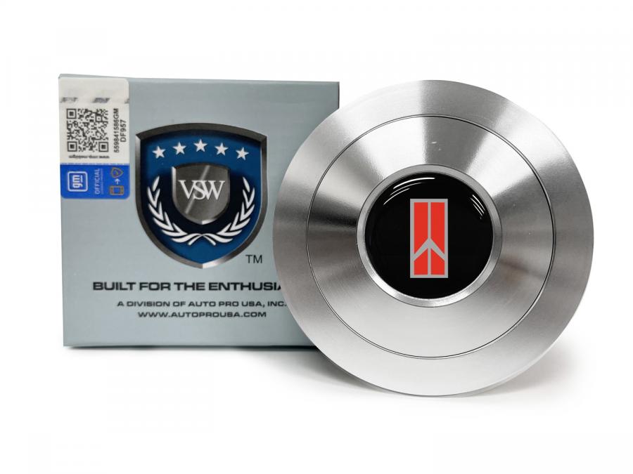 This VSW S9 Premium Billet Aluminum Pressure Fit 9-Bolt Steering Wheel Horn Button with OLDSMOBLIE Emblem is a GM Licensed Product