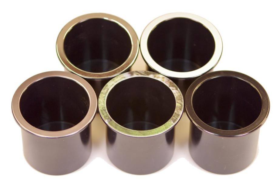 The drink holders in our consoles are made from durable, long-lasting polymers that will provide many, many years of functionality while retaining the striking appearance you expect from Classic Consoles. All drink holders come standard with a black finish around the top rim. The top rim is the area of the drink holder predominately seen when the console is installed in your vehicle so we offer you the option of four additional distinct colors & finishes to customize your console or to match the existing trim package of your vehicle’s interior.