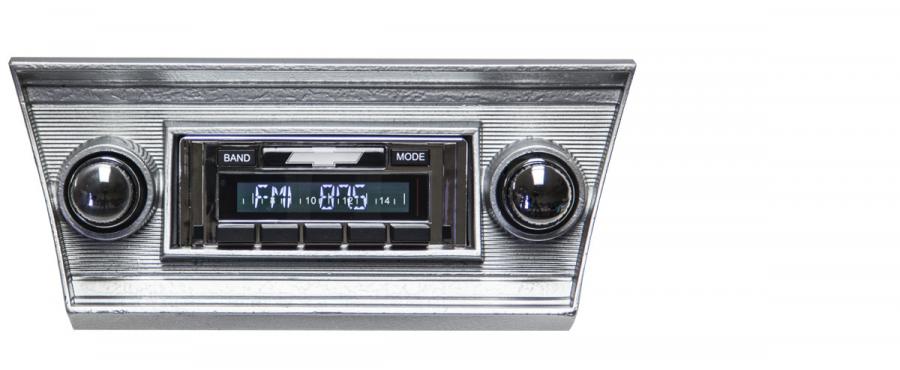 Custom Autosound's USA-630 is designed to provide the best in audio technology wrapped in a classic car stereo look. It will fit your car or truck's stock dash without any modifications required. It has been designed with a bezel containing your car's manufacturer logo as well as large OEM style push-buttons to compliment your dash. When it comes to electronics the USA-630 boasts modern features like a USB input for flash drives to playback MP3/WMA song files and a dock for your iPod. When connected to these devices the radio's digital display will show artist, song, album titles and allow song navigation through the radio itself. The USA-630 is compatible with our optional BLUKIT which enables bluetooth music streaming from your enabled phone as well as hands-free mobile calling through the vehicle's speakers & BLUKIT's built-in microphone. With 300 watts peak the radio provides plenty of power but additionally contains four RCA pre-outs for optional amplifiers. It also comes with Auxiliary inputs for satellite radio tuners, iPhones or any portable player you may wish to use.