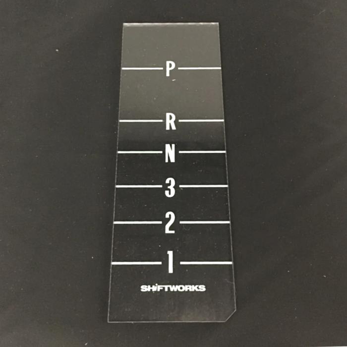 Indicator lens upgrade for a factory console with display for various automatic transmissions. All lenses are clear plastic with white lettering.