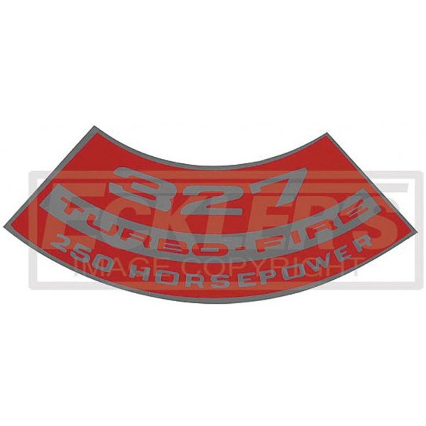 Reproduction Of Original Correct Small Block 327, 250 Horsepower Air Cleaner Decal This El Camino reproduction air cleaner decal has been manufactured to original factory specifications using today's modern manufacturing techniques. You will find the fit and finish will work superbly for your restoration. In addition, using a reproduction air cleaner decal from the El Camino Store will add authenticity and value to your vehicle.