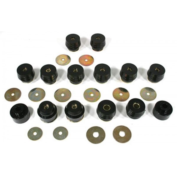 Replacement Bushings Great Performance Upgrade Urethane Construction Reduces Body Roll While not often thought about, body mount bushings can be very hazardous to your 1978, 1979, 1980, 1981, 1982, 1983, 1984, 1985, 1986 and 1987 El Camino if worn down long enough. The El Camino Store wants to help in figuring out whether or not you need new body bushings and radiator support bushings. Some symptoms of worn bushings could be uneven tire wear, ?darting? when using the brakes, clunking from the front suspension, or moving left or right with no steering input while driving forward. You may also notice squeaking noises coming from your El Camino, which could mean a need for new radiator support bushings. Any of these things could mean that your bushings need replacing, and The El Camino Store is here to provide the best replacement bushing kits for body bushing and radiator support. Replacing exact original factory specifications, our body bushing mount kit will exactly fit your original El Camino bushings. Our bushing mount kits are guaranteed to improve the handling and stiffness of your El Camino and reduce chances of uncontrolled steering movement or suspension clunking. These bushings are also guaranteed to last longer than stock rubber bushings. When checking and replacing the bushings of your El Camino, they can be inspected by looking at the top of bushing that sits between the frame and body of your El Camino. Trust The El Camino Store to provide only the best replacement parts for your 1978, 1979, 1980, 1981, 1982, 1983, 1984, 1985, 1986 and 1987 El Camino.