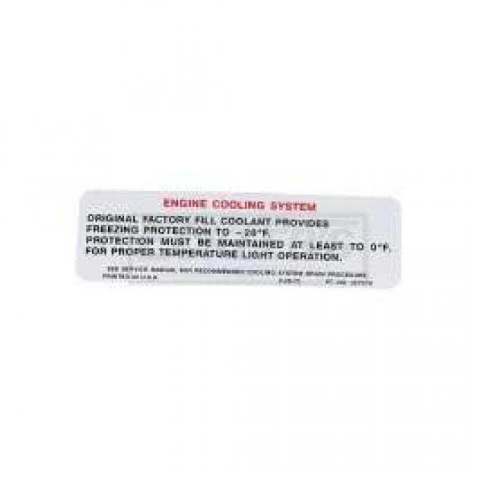 Reproduction Of Original This El Camino reproduction caution cooling decal has been manufactured to original factory specifications using today's modern manufacturing techniques. You will find the fit and finish will work superbly for your restoration. In addition, using a reproduction caution cooling decal from the El Camino Store will add authenticity and value to your vehicle.