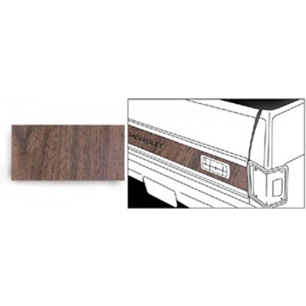 Reproduction Of Original Correct Walnut Grain Fits Between Upper And Lower Tailgate Moldings This El Camino reproduction tailgate decal has been manufactured to original factory specifications using today's modern manufacturing techniques. You will find the fit, finish and function will work superbly for your restoration. In addition, using a reproduction tailgate decal from the El Camino Store will add authenticity and value to your vehicle.