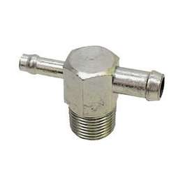 Quality Reproduction Sliver Cad Plated 1/2 NPT Fitting Nice reproduction of the rear intake fitting with a non-threaded port for the power brake booster and one port for a vacuum source. The second port is usually used to connect to the modulator valve on an automatic transmission.