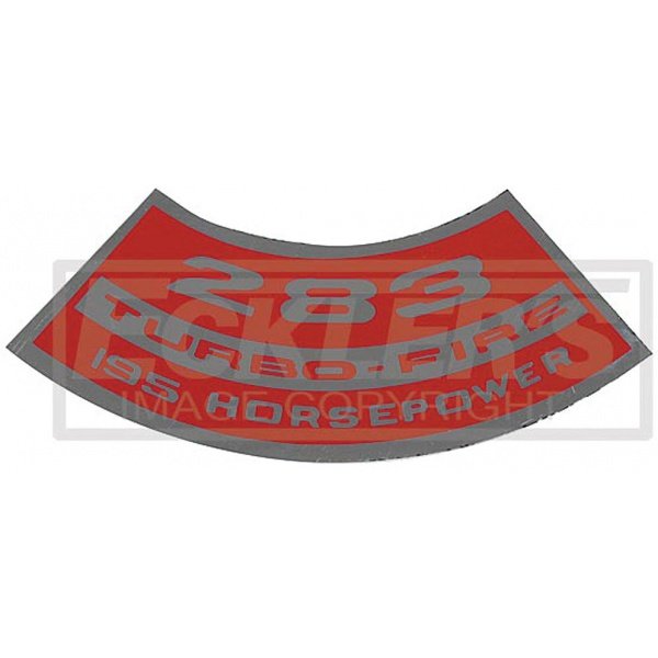 Reproduction Of Original Correct Small Block 283, 195 Horsepower Air Cleaner Decal This El Camino reproduction air cleaner decal has been manufactured to original factory specifications using today's modern manufacturing techniques. You will find the fit and finish will work superbly for your restoration. In addition, using a reproduction air cleaner decal from the El Camino Store will add authenticity and value to your vehicle.