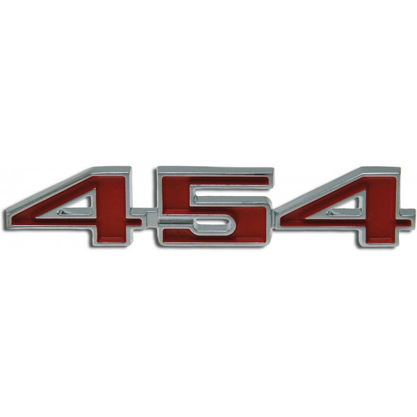 Reproduction Of Original Correct Red Inlay 454 Emblem Fits Left Or Right Hand Includes thread cutting nuts This El Camino reproduction fender emblem has been manufactured to original factory specifications using today's modern manufacturing techniques. You will find the fit, finish and function will work superbly for your restoration. In addition, using a reproduction fender emblem from the El Camino Store will add authenticity and value to your vehicle.