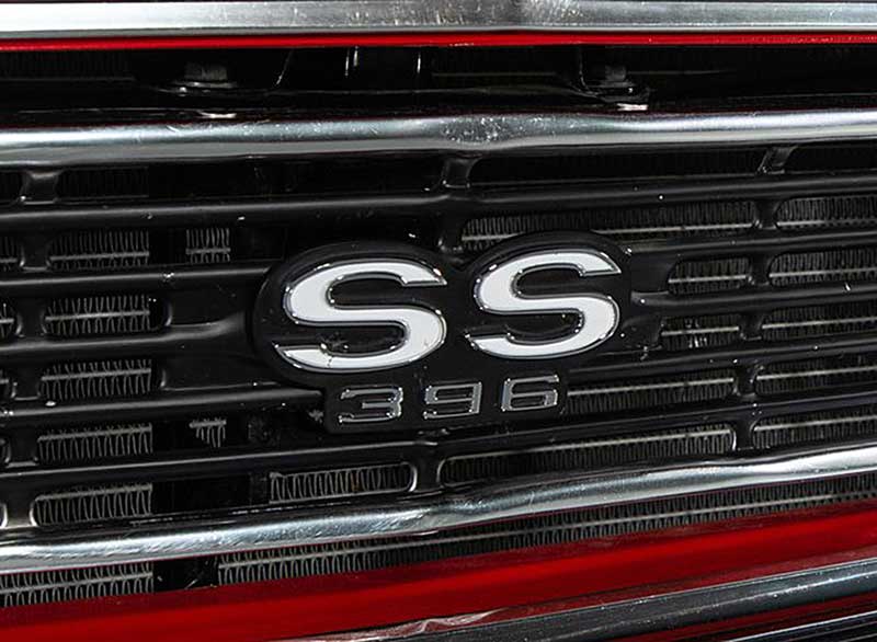 Reproduction of the original "SS-396" front grill emblem designed for use on 1966 Chevelle SS models. Manufactured in quality die-cast zinc metal replicating the factory original in every detail. Features correct curvature allowing the emblem to fit perfectly onto an original GM or reproduction grill. Includes mounting hardware.