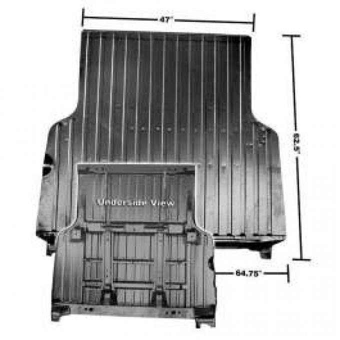 Reproduction Bed Floor Panel Correct Ribbing And Fuel Neck Clearance Bump Ribs Match Access Panel P/N 09-1192 Sold Separately Includes Lower Bracing and Fuel Strap Mounts Includes Rear Body Mount Towers Correct Commonly Rusted End Panel Pre Attached Correct Tail Panel (Screwed-On Panel Under Tailgate) P/N 09-1208 Sold Separately This El Camino reproduction bed floor panel has been manufactured to original factory specifications using today's modern manufacturing techniques. You will find the fit and function will work superbly for your restoration. In addition, using a reproduction bed floor panel from the El Camino Store will add authenticity and value to your vehicle.