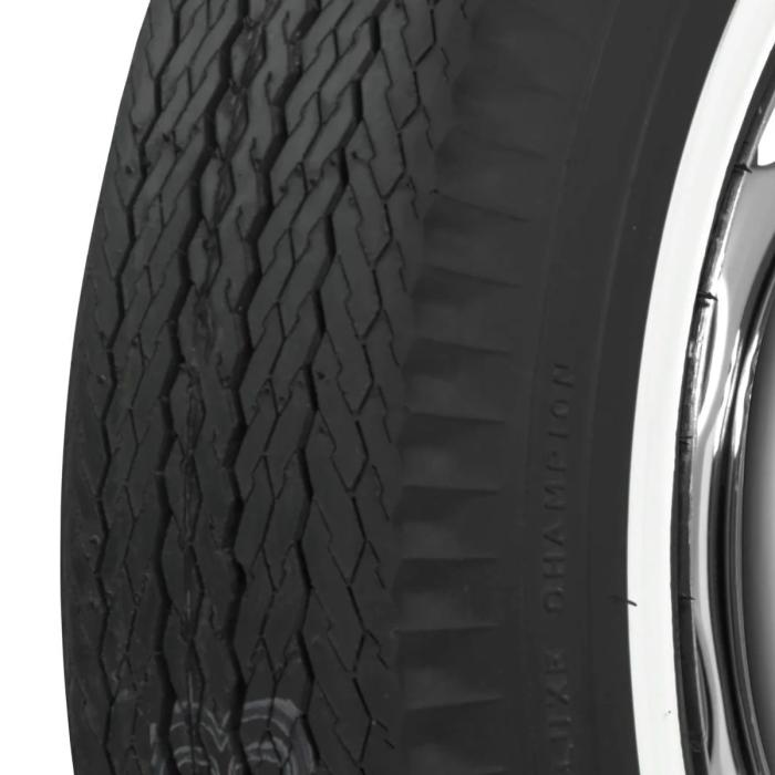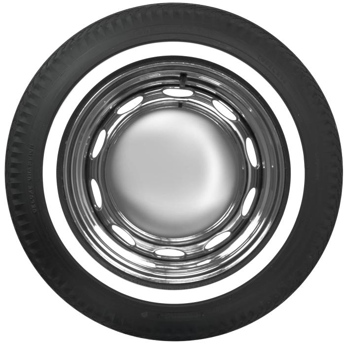 This product features a genuine narrow whitewall sidewall style. This means that the bright white rubber is added directly to the tire sidewall during initial construction of the carcass, resulting in a truly integrated, high-quality product after vulcanization. When we reference "narrow whitewall" tires, we typically mean a whitewall that measures less than two inches, but it can also mean a whitewall that does not reach all the way into the bead. Narrow whitewall tires are popular for many cars built in 1960's all the way into the 1990's.