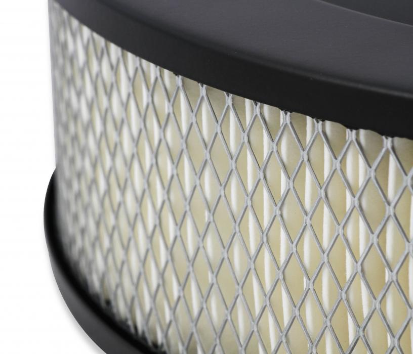 Complete your Sniper upgrade with our new 14" Sniper air cleaner assemblies. Each air cleaner assembly includes a stamped steel lid with an embossed Holley Sniper logo, a 1" drop base specifically designed for Sniper EFI applications, your choice of a 3" or 4" paper filter element, and all necessary mounting hardware. The included drop base fits all carbs and throttle bodies with a 5-1/8" neck - more specifically Sniper EFI 4150 throttle bodies with clearances for front mounted fuel fittings*, and Sniper EFI 2300 throttle bodies. Available in both black and chrome finishes to best match your SniperEFI unit.