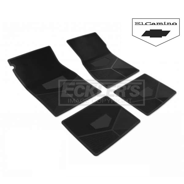 The floor mats in your 1971-1972 El Camino can take a lot of abuse over the years. From rain, snow, or mud, your feet can bring in all kinds of elements to make your interior appear dingy. Worn down, ugly floor mats can ruin the inside appearance of your classic El Camino. The El Camino Store would like to enhance the vintage look of your El Camino interior with these great looking, restoration correct rubber floor mats from Legendary Auto Interiors. Every four piece set features officially licensed, molded-in logos on each mat. These mats will exactly replace your original mats and come with anti-skid backing to keep them securely in place during driving. These custom rubber floor mats from Legendary Auto Interiors will make the interior of your El Camino look good as new. From racers, show cars, street rods, and daily drivers, you can trust The El Camino Store for all of your restoration and replacement needs for your 1971 1972 El Camino!
