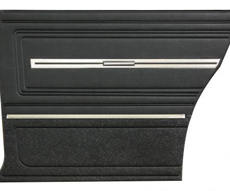 Distinctive Industries 1966 Chevelle/El Camino Pre-Assembled Door/Quarter Panels are a correct reproduction of the original. We offer original Madrid grain with Worm (also known as Crushed Ice) grain on bottom in 32 oz vinyl. The dielectric patterns are correct along with the chrome (Mylar®) trim, and hole placement pre-cut into the panel backed by die cut fiber board, just like the originals.