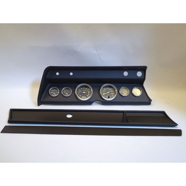 Great Modern Upgrade Modern Accurate Gauges Included Molded ABS Plastic Dash Panels Replaces Original Gauge Housing Clusters Come Complete With Wiring Harness Includes Oil & Temperature Sending Units Includes Turn Signal & High Beam Indicators 3-3/8? 140 Speedometer 10,000 RPM Tachometer 2-1/16? Oil Pressure Gauge 2-1/16? Water Temperature Gauge 2-1/16? Fuel Gauge 2-1/16? Volt Gauge Speedometer Sending Unit P/N 612094 (Sold Separately) Instructions Included This Chevelle replacement instrument cluster panel has been manufactured to meet or exceed factory specifications and performance. You will find the fit, finish and function will work perfectly for your Chevelle.