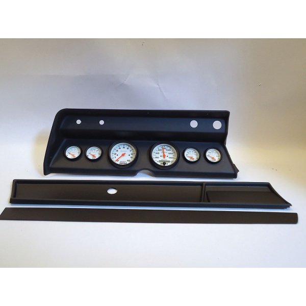 Great Modern Upgrade Modern Accurate Gauges Included Molded ABS Plastic Dash Panels Replaces Original Gauge Housing Clusters Come Complete With Wiring Harness Includes Oil & Temperature Sending Units Includes Turn Signal & High Beam Indicators 3-3/8? 140 Speedometer 10,000 RPM Tachometer 2-1/16? Oil Pressure Gauge 2-1/16? Water Temperature Gauge 2-1/16? Fuel Gauge 2-1/16? Volt Gauge Speedometer Sending Unit P/N 612094 (Sold Separately) Instructions Included This Chevelle replacement instrument cluster panel has been manufactured to meet or exceed factory specifications and performance. You will find the fit, finish and function will work perfectly for your Chevelle.