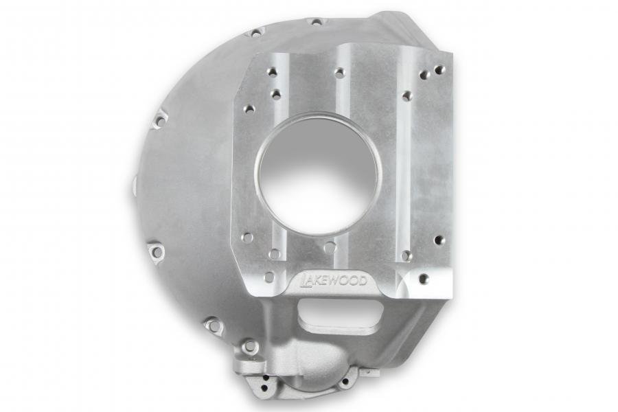 This Lakewood cast aluminum bellhousing connects Big Block Mopar engines to Mopar 3-Speed and 4-Speed Transmissions (A-833, A-903, A-250, and A-230) or Ford-style TKX and TKO transmissions. Designed as a compact, lightweight option for transmission swaps or upgrade. It can use either a 130 or 143-tooth flywheel and a 10.5 or 11-inch clutch. It is suited for factory-style mechanical or hydraulic clutch actuation and has dual starter positions to provide ultimate combination options and fitment.