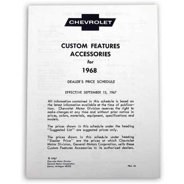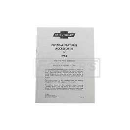 Reproduction Of Original Features Custom Accessories Available Through Your GM Dealer When These Cars Where New Complete With Accessory Listing, Gm Part Number And Price At The Time Of Print See Interesting Accessory Fact Related To Your El Camino Features Items Such As Floor Mats, Antenna, Tape Players And Much Much More A Must For Any El Camino Library This El Camino reproduction custom features and accessory manual has been manufactured to original factory specifications using today's modern manufacturing techniques. You will find the fit, finish and function will work superbly for your restoration. In addition, using a reproduction custom features and accessory manual from the El Camino Store will add authenticity and value to your vehicle.
