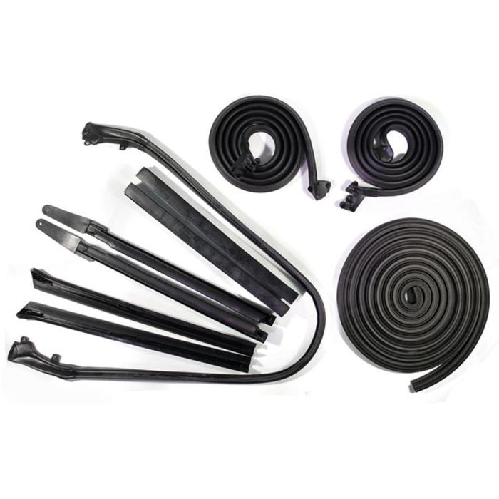 For convertible models, this Basic Kit is designed to fit 1966-1967 Chevrolet Chevelle and Malibu cars. It includes high-quality seals for the door (LM 12-J), roof rail (RR 1609), and trunk (TK 46-16), ensuring a snug and reliable fit. Crafted with precision, these seals are made to keep out water, dust, and wind, protecting your vehicle's interior and enhancing its overall comfort. The durable materials are built to last, maintaining their flexibility and effectiveness over time. Installation is straightforward, with each piece tailored to fit perfectly in its designated area, making it an ideal choice for restoring your classic car to its original glory. Backed by a 30-year warranty from SuperSoft, you can trust in the long-term performance and quality of this kit.