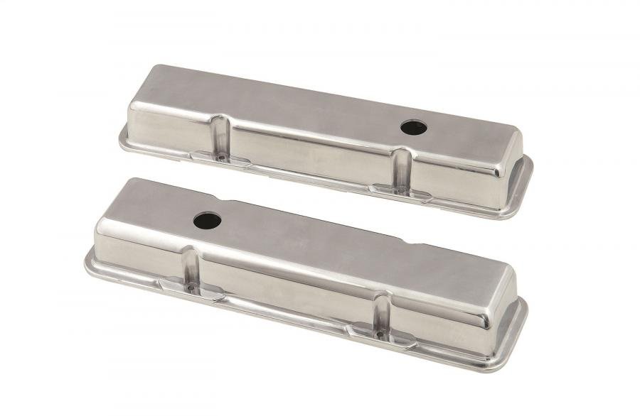 Mr. Gasket aluminum valve covers are precision die-cast for light weight and a perfect fit. They feature and extended sealing lip to positively locate and secure the gasket and stop it from moving to eliminate oil leaks. Aluminum short-style valve covers for 1958-1986 Chevy small block 283-400 engines. Covers have a smooth top and include a 1-1/4 inch diameter breather hole. Sold as a pair.