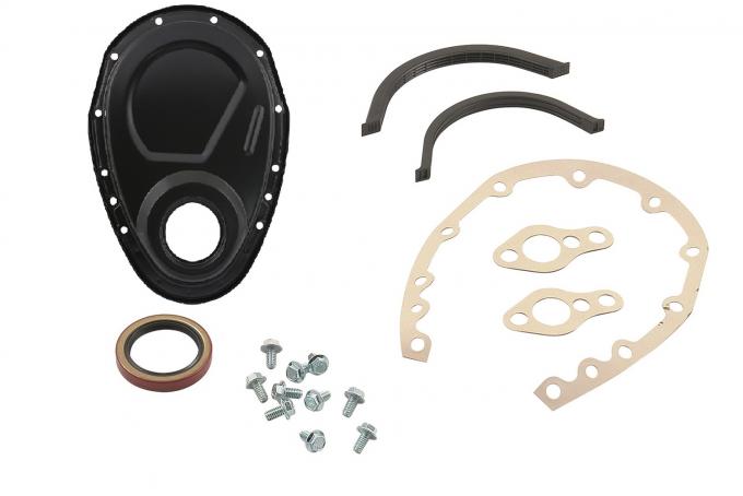 TIMING COVER; FLAT BLACK; USE W/OEM TIMING CHAIN; COMPLETE KIT; DOUBLE ROLLER TYPE CHAIN/GEAR DRIVES NEED TO CHECK CLEARANCE; | |