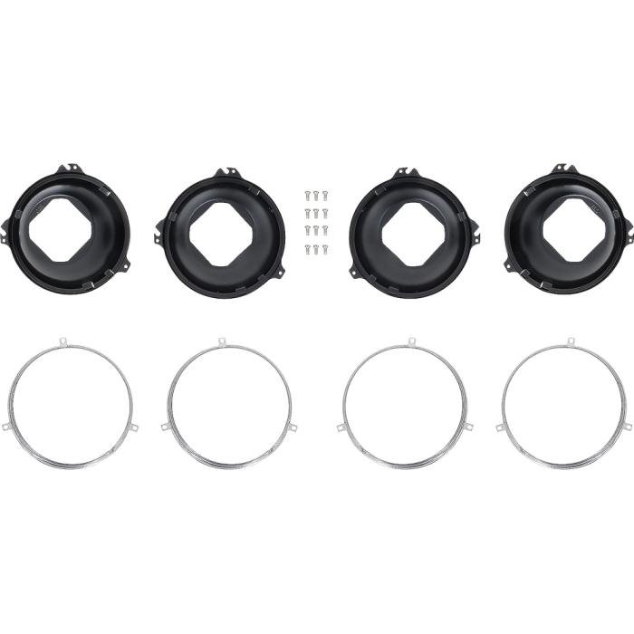 Reproduction of the original headlamp mounting set designed for use on various Chevrolet and GMC truck models. This set includes four 3-tab stainless headlamp retaining rings, four EDP coated "square-hole" style headlamp buckets, and the 12 screws needed to secure the trim rings to the bucket.