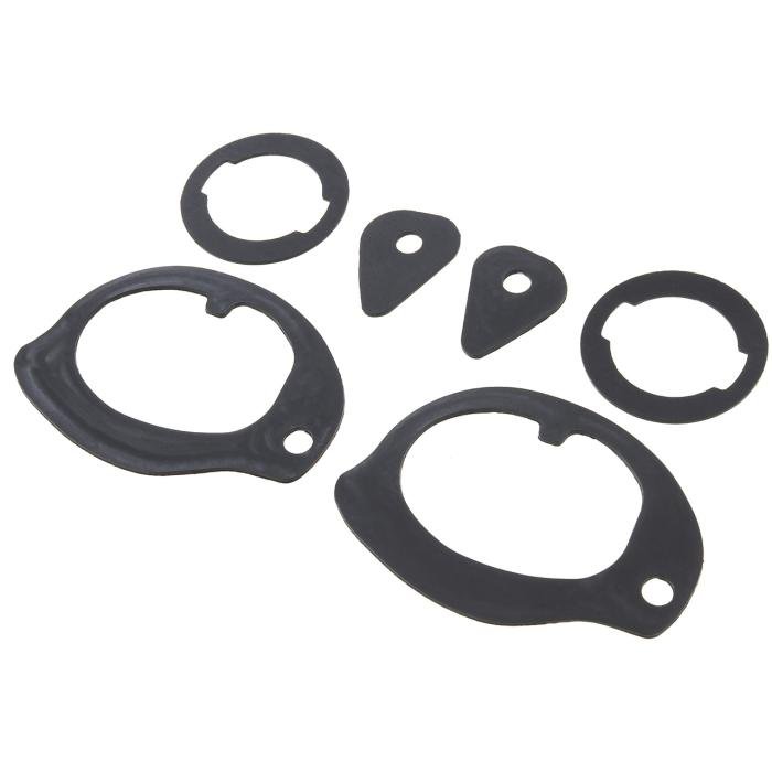 Reproduction outer door handle gaskets for various 1960-70 Chevrolet full size passenger cars, 1966-67 Chevy II Nova and 1968-72 Chevelle and El Camino models. Each gasket is die-cut for a perfect fit. We recommend replacing the door handle gaskets and lock gaskets when painting the vehicle or replacing the exterior door handles. Includes exterior door handle gaskets and lock cylinder gaskets for the driver and passenger sides.