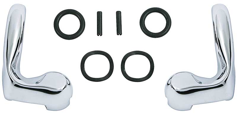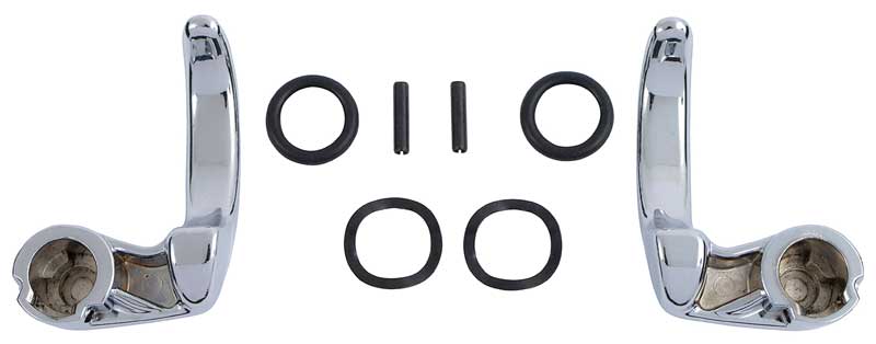 Reproduction vent window handle set for various 1960-67 Chevrolet, Buick, and Oldsmobile models. Each handle is manufactured in quality die-cast ainc and features a beautiful "show quality" chrome-plated finish. Includes 2 vent window handles, 2 spring washers, 2 O-rings, and 2 roll pins for a complete replacement. Note: Does not fit 1966-67 Chevelle 2-door hardtop or convertible models.