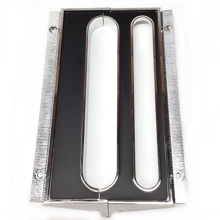 Reproduction of the 2 piece shifter bezel/inserts for 1965 Chevrolet Chevelle and El Camino models with automatic transmission and console floor shifter. These inserts are chrome with fluted edges and black inner recessed area. Sold as a 2 piece kit. Does not include the lens and housing.