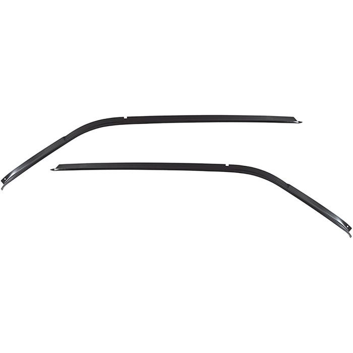 Reproduction roof drip rails for 1966-67 Chevrolet Chevelle, Pontiac GTO, Tempest, LeMans, Buick Skylark, Gran Sport, and Oldsmobile 442, Cutlass, and F85 2-door hardtop models. Manufactured to factory specifications, these steel drip rails install along the roofline above the door openings to channel water away from the side windows. Each rail is precision-stamped to match the original contours and dimensions for a factory-style appearance and proper fit. Includes both LH and RH sides.