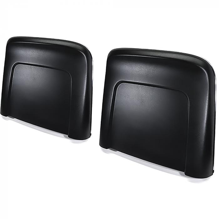 Reproduction seat back panels for a wide variety of 1966 GM A, B, and X-Body models with Strato bench or Strato bucket seating. Manufactured in durable plastic and textured with correct madrid grain. These panels are produced in modern ABS material to replace the original steel seat back panels that are prone to dents, cracking and corrosion. It is recommended that the seat back panels are replaced when reupholstering your seats to provide your classic GM vehicle a factory fresh appearance and to give your restoration work greater longevity. Includes chrome trim installed on the edges. For 1966 style Strato bench or bucket seats with no locking mechanism, and no push button in the center of the seat back. Sold as a pair.