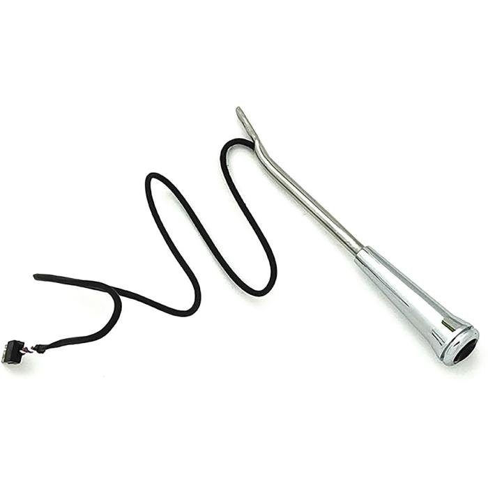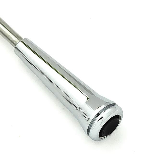 Reproduction turn signal lever for 1971-75 Oldsmobile Cutlass, Toronado, 98 and Delta 88. Chrome lever with two wires and a chrome knob with black pushbutton for cruise control.