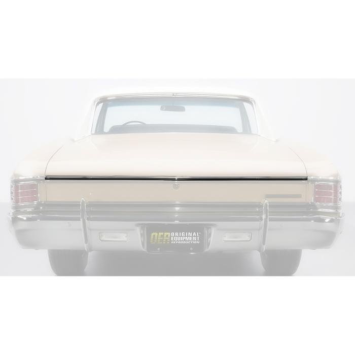 Quality reproduction 1967 Chevelle and Malibu trunk lid lip molding. Moldings are manufactured in stamped aluminum replicating the original in appearance and fit. Replace your dented or missing moldings to restore the factory original appearance. Hardware is included.