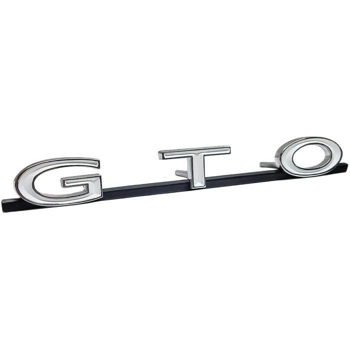 Reproduction grille emblem GTO for use on 1968 Pontiac GTO models. This emblem mounts on the radiator grill has white lettering with chrome trim and a black bar at the bottom to connect the letters. Sold individually.