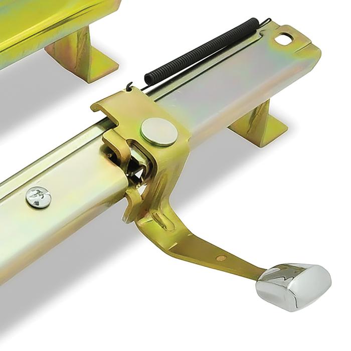 Reproduction bucket seat adjustment track assembly for 1968-72 GM A-Body models.This track mounts the bucket seat to the floor and allows the front seat to slide forward and backward. Each track is manufactured to replicate the original in design, appearance and functionality. Will replace the old or worn out original track exactly. Includes the seat tracks, spring and adjustment bar for slider. Note: The tension spring is available separately. Fits the RH side.