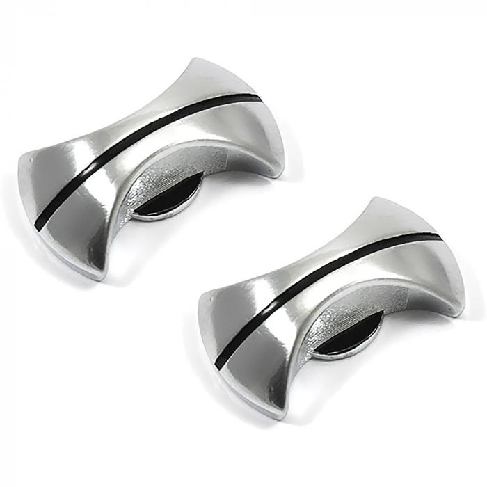 1968 Oldsmobile Cutlass, 442, F85 outer radio knobs. These new chrome knobs have a black stripe. You can now replace the missing or damaged radio knobs. Sold by the pair.