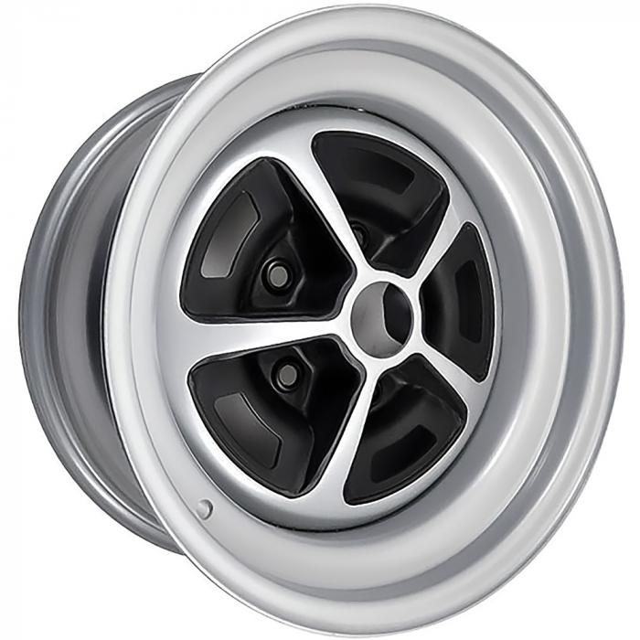 This reproduction of the original 5 spoke SS wheel with an OE finish was originally found on various applications in the GM line as an option. Finished in silver paint with matte black accents. Center cap, trim ring and lug nuts are not included but are available separately.