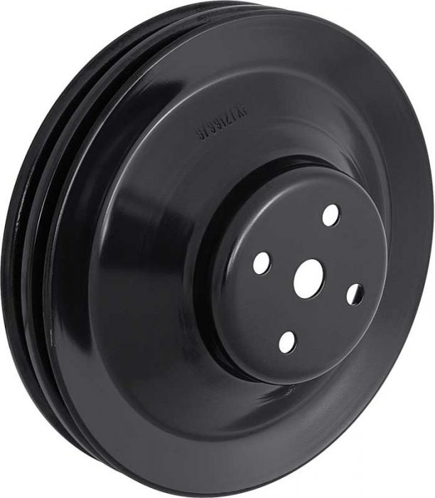 Reproduction 2-groove water pump pulley for 1969-70 Firebird and Trans Am V8 models, without AC, with power steering. This 8-1/8" diameter pulley features correct markings 9799127XF. For use with 350, 400, 455, and most 428 motors. Replace the damaged or missing water pump pulley with this quality reproduction. Replaces original GM part number # 9799127.