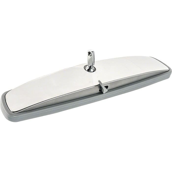 OER reproduction of the original 12" day/night mirror originally installed in various GM A and B body models including 1969-70 Impala, and 1969-72 Chevelle models (without built in map light). Superb quality reproduction of the original mirror featuring stainless steel construction with the correct vinyl molded frame and "Guide" markings as original. Features an authentic, original style knob for Day/Night use adjustment along with the original retaining screw and bushing for easy installation.