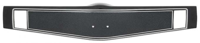 OER® reproduction Black Center Steering Sheel Shroud for various 1969-70 GM models. Each steering wheel shroud is injection molded as original in the correct grain and coloration that matches the OEM or reproduction steering wheel. This reproduction is designed as an exact replacement for the original and features the chrome "hot-stamp" trim for total authenticity. Fits applications listed below.