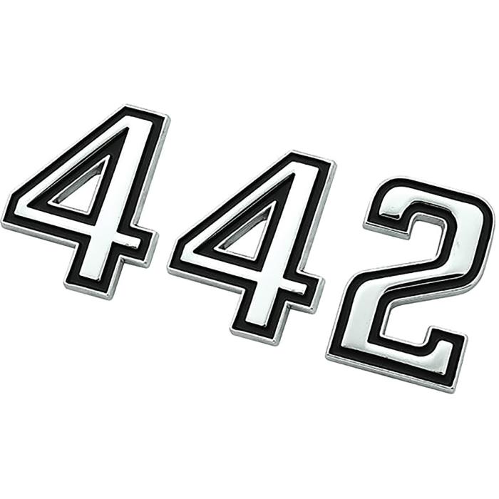 Reproduction fender emblem set for 1969-72 Cutlass and 1969-71 442 models. Thses emblems are a three piece set of individual numbers. Sold as a set.