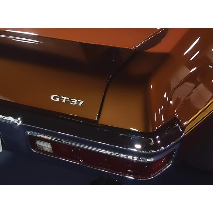 1970-1971 Pontiac GTO, LeMans, Tempest rear decklid emblem "GT-37". Replaces General Motors part number 9870519.