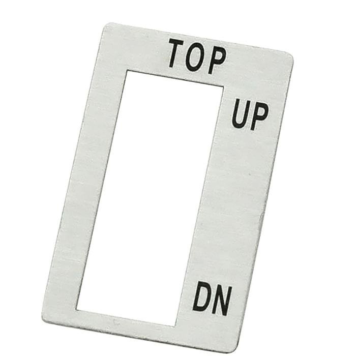 Aluminum convertible top switch insert bezel that has been silk screened and die stamped brushed aluminum. Upgrade the peeling, faded or damaged convertible top switch insert with this great reproduction. Item has an adhesive backing and fits 1970-72 Oldsmobile Cutlass and 1970-71 Oldsmobile 442 convertible models.