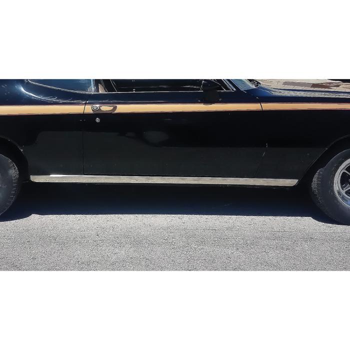 Reproduction RH rocker panel molding for 1970-72 Buick Skylark GS models. Manufactured to factory specifications, this molding installs along the lower body rocker area between the wheel openings to replicate the original wide-style rocker trim. Each molding is manufactured from bright stainless steel for an authentic original appearance. Mounting hardware for installation is sold separately. This molding does not have the painted stripes. Use them without stripes, paint the stripes on yourself, or add striping tape if desired. RH designates the passenger side of the vehicle.