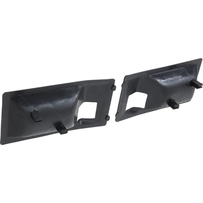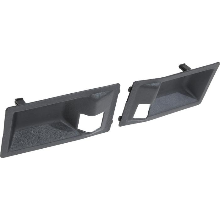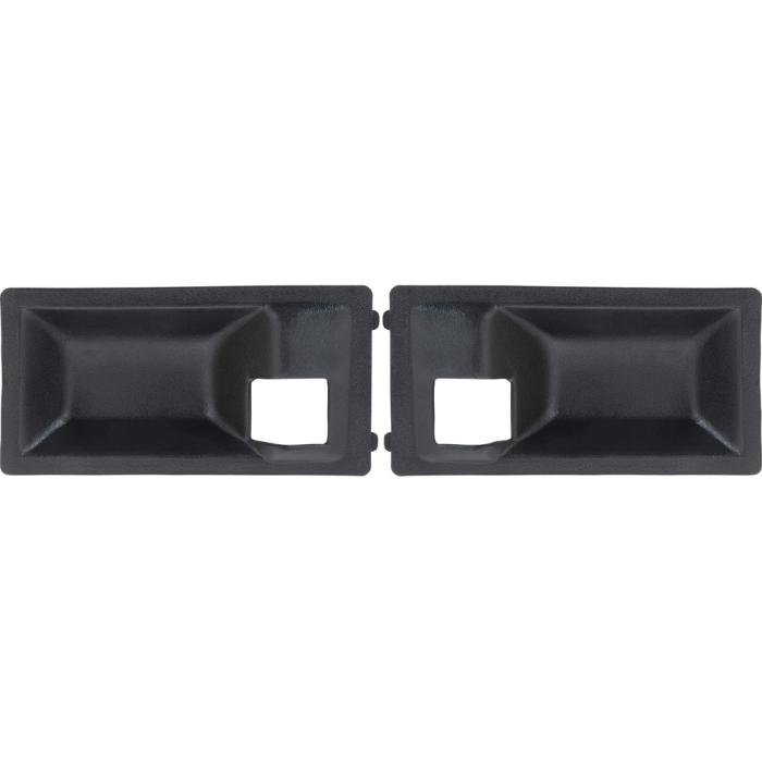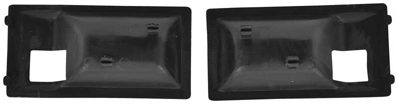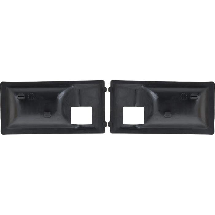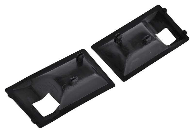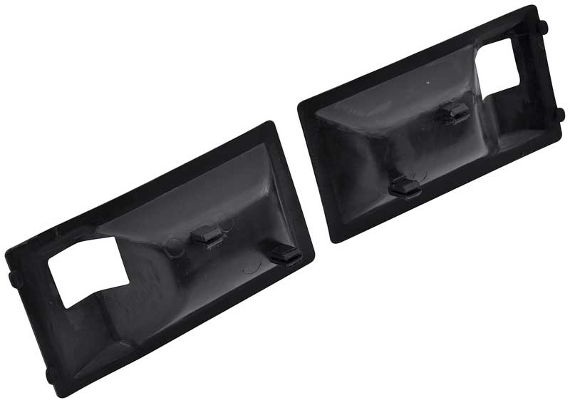Replace your worn or missing inner door handle escutcheons, also known as finger guards, with these OEM style reproductions. Manufactured from injection molded material that can be painted to match your original interior color or left "as-is" in black molded-in color. Inner door handle escutcheons snap into the die-cast portion of the handle with integral clips that are molded into the escutcheon. The chrome perimeter of the die-cast handle is left exposed for a deluxe upgraded appearance. This finger guard was originally used for Camaro and Firebird models with optional deluxe interior. Sold in pairs.