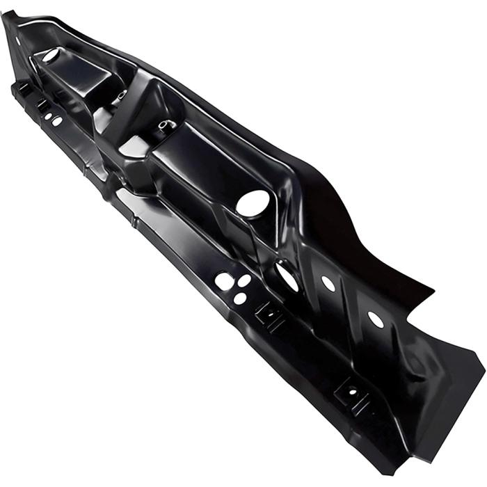 Reproduction trunk floor rear body cross rail for 1970 Chevrolet Chevelle and Malibu models. Manufactured to factory specifications, this steel reinforcement panel installs at the rear edge of the trunk floor and provides structural support where the trunk floor meets the rear body panel and tail light panel. Each cross rail is stamped to match original GM contours and dimensions for an authentic OE fit and appearance. Replaces GM part number 8775897.