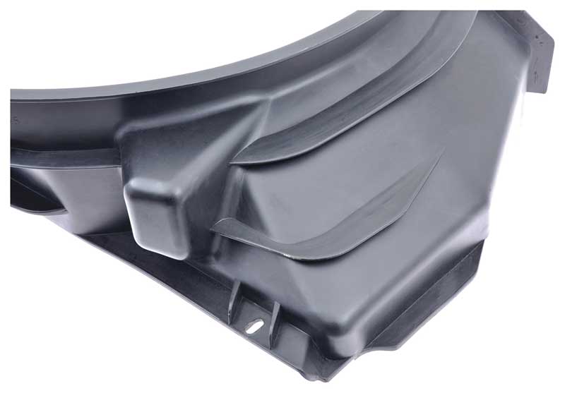 Reproduction of the original radiator fan shroud for 1971-77 Chevrolet models with small block engines. Fan shrouds are manufactured with pressure-injected ABS plastic to ensure that each shroud meets or exceeds OEM specifications. Originally supplied by GM as a two-piece shroud, these OER shrouds are pre-assembled with heavy duty staples for a straightforward installation. Replaces OE #3986905, 6261917. Shipped oversize.