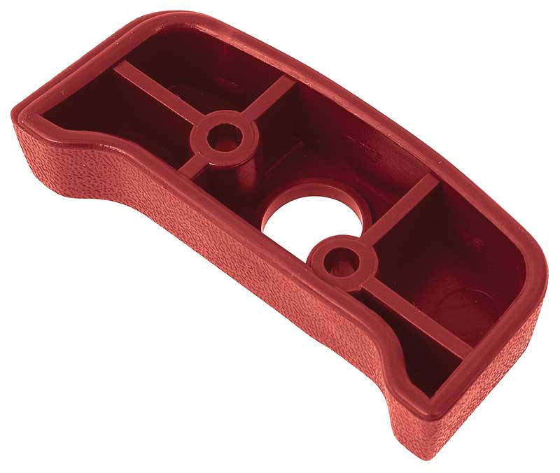 Reproduction of the original shoulder belt guide escutcheon designed to hold the shoulder belt retainer to the upper portion of the bucket seat back. Manufactured in injection molded ABS material to replicate the original design. Includes correct grain and mounting points. This item is commonly overlooked during the replacement of seat upholstery and seat/shoulder belt related items. RH passenger side. Available in Firethorn Red. Paintable to desired color.