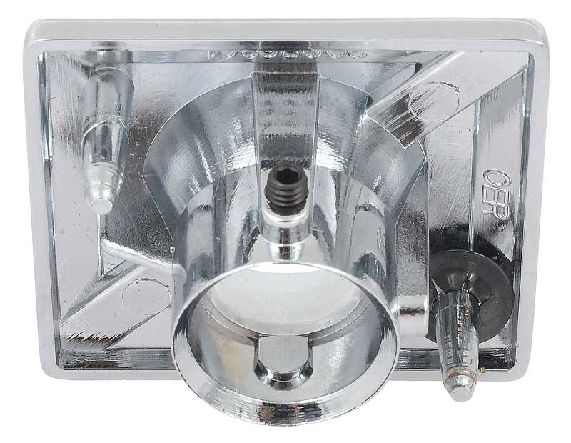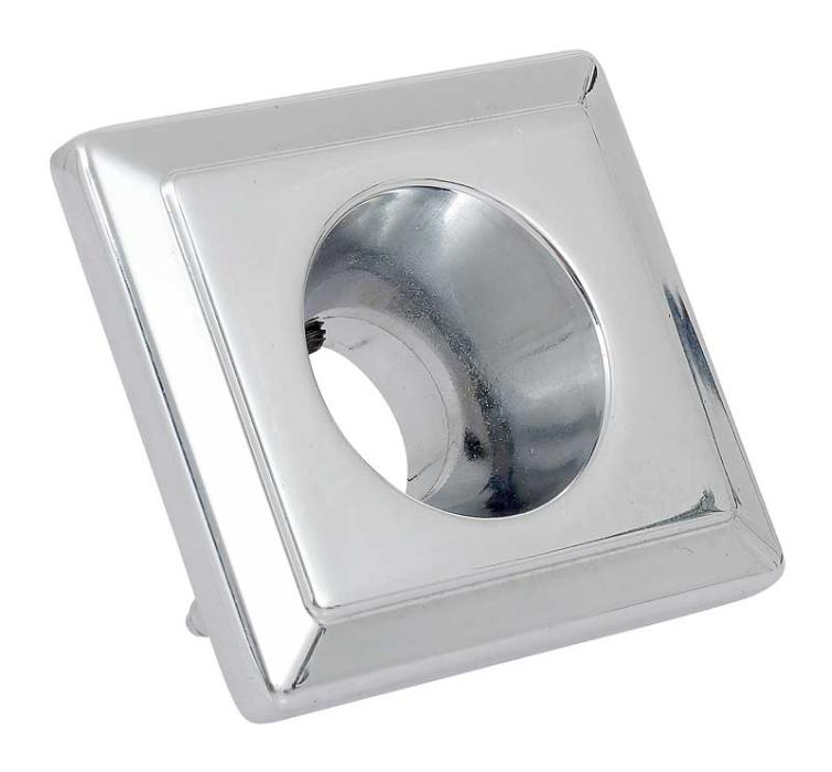 Reproduction inner remote mirror door bezel for 1978-1988 Buick, Chevrolet, Oldsmobile, and Pontiac models. Each bezel is manufactured in die-cast zinc to factory specifications replicating the original in quality, design, and fitment.